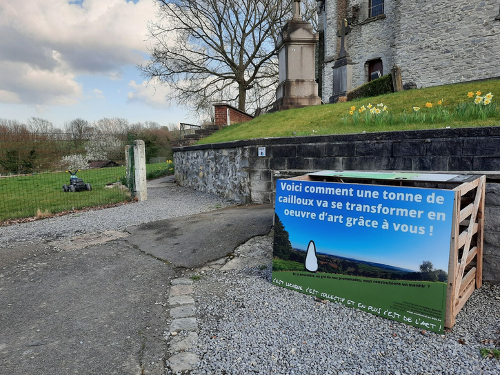 Pour cela, il suffit de se rendre au pied de l'église, de choisir dans le bac un caillou et de transporter celui-ci jusqu'au menhir situé 500 mètres plus loin.